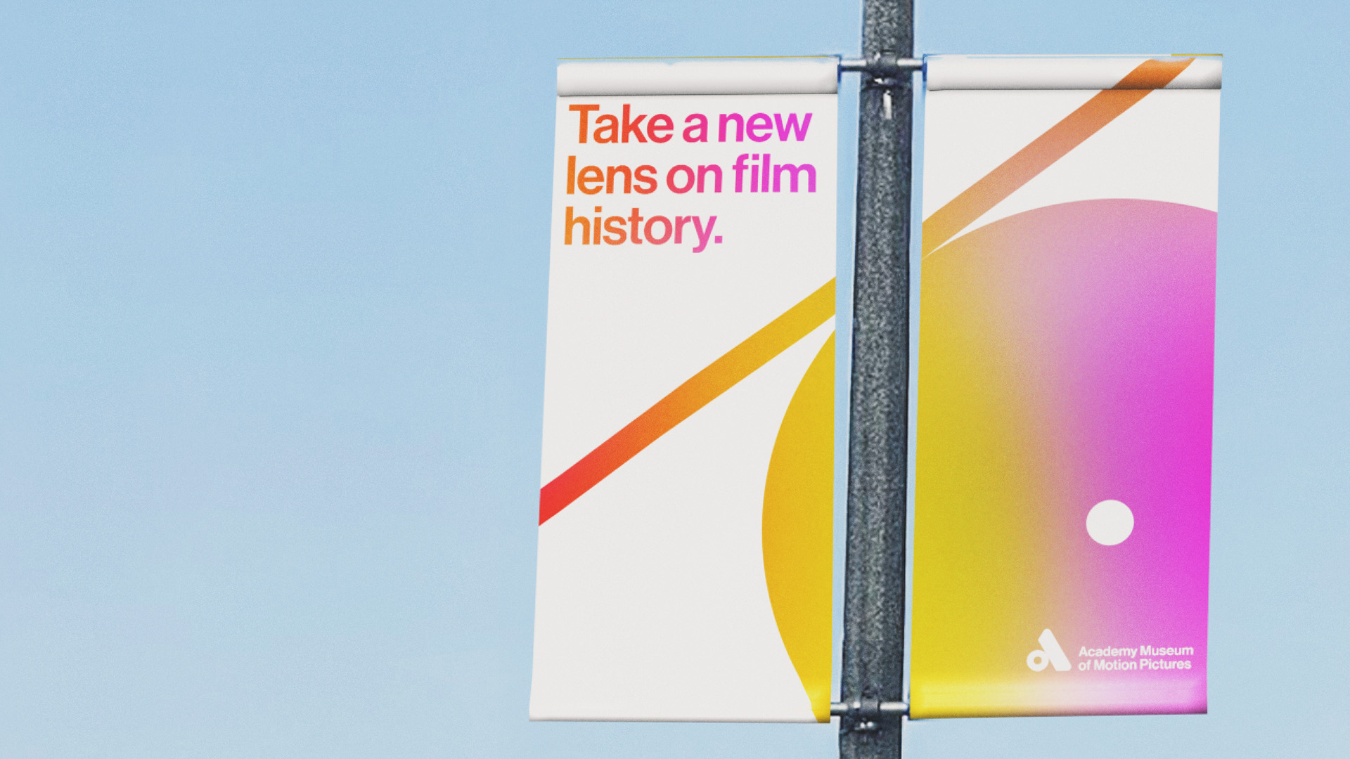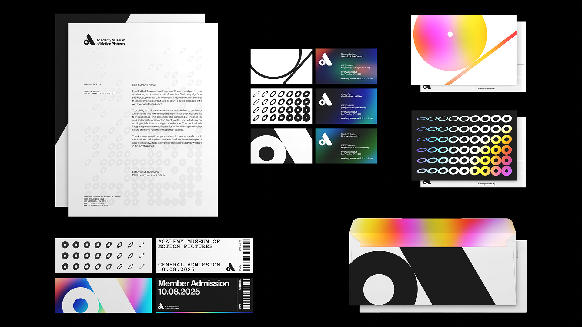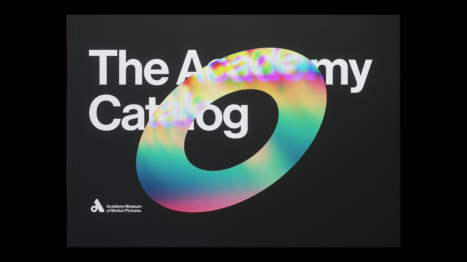 The catalog extends the Academy Museum’s identity into print, using circular forms, distortions, and gradients to reflect the language of filmmaking. The catalog includes a history of the museum, permanent collections, and highlighted creators.