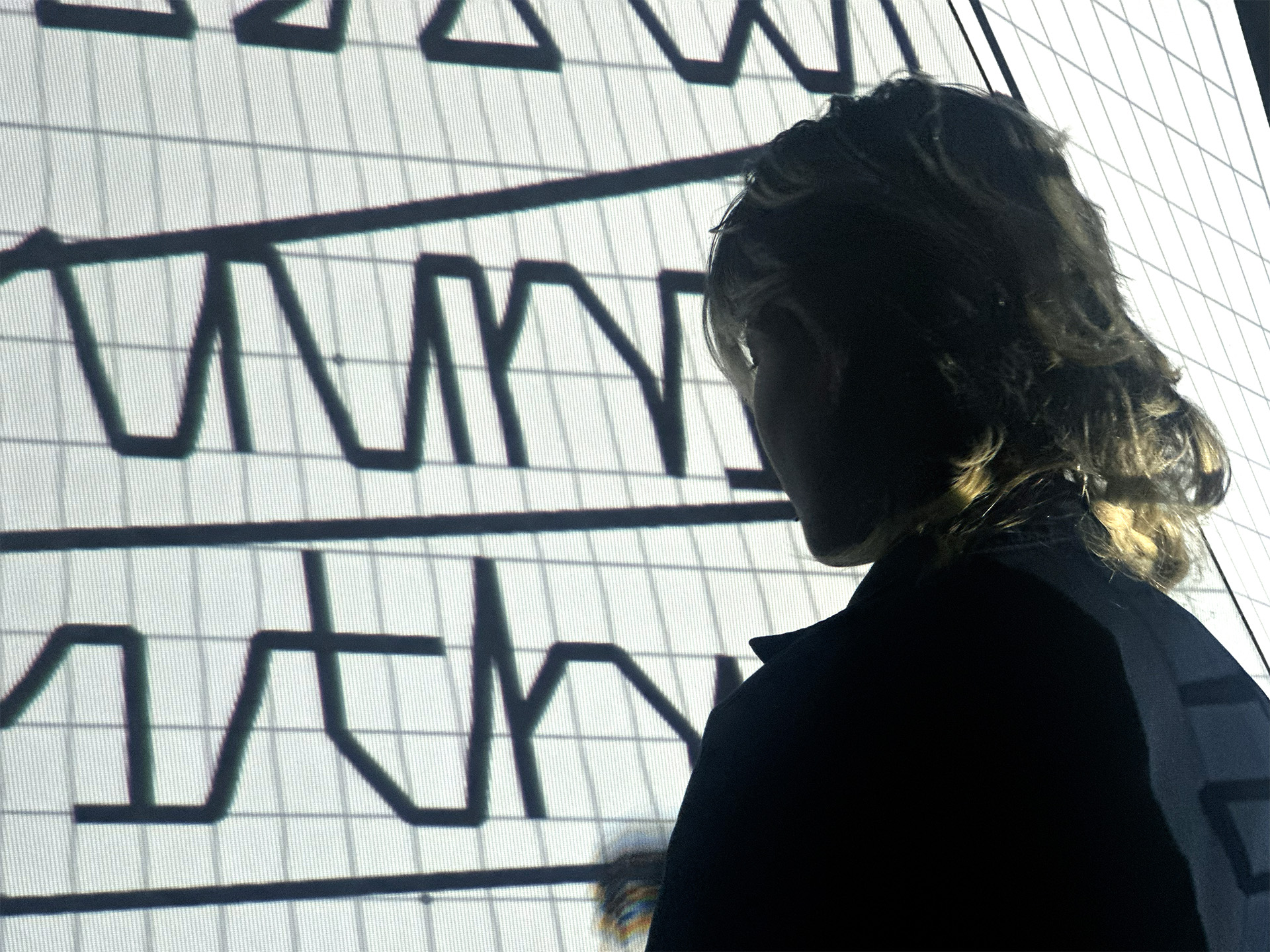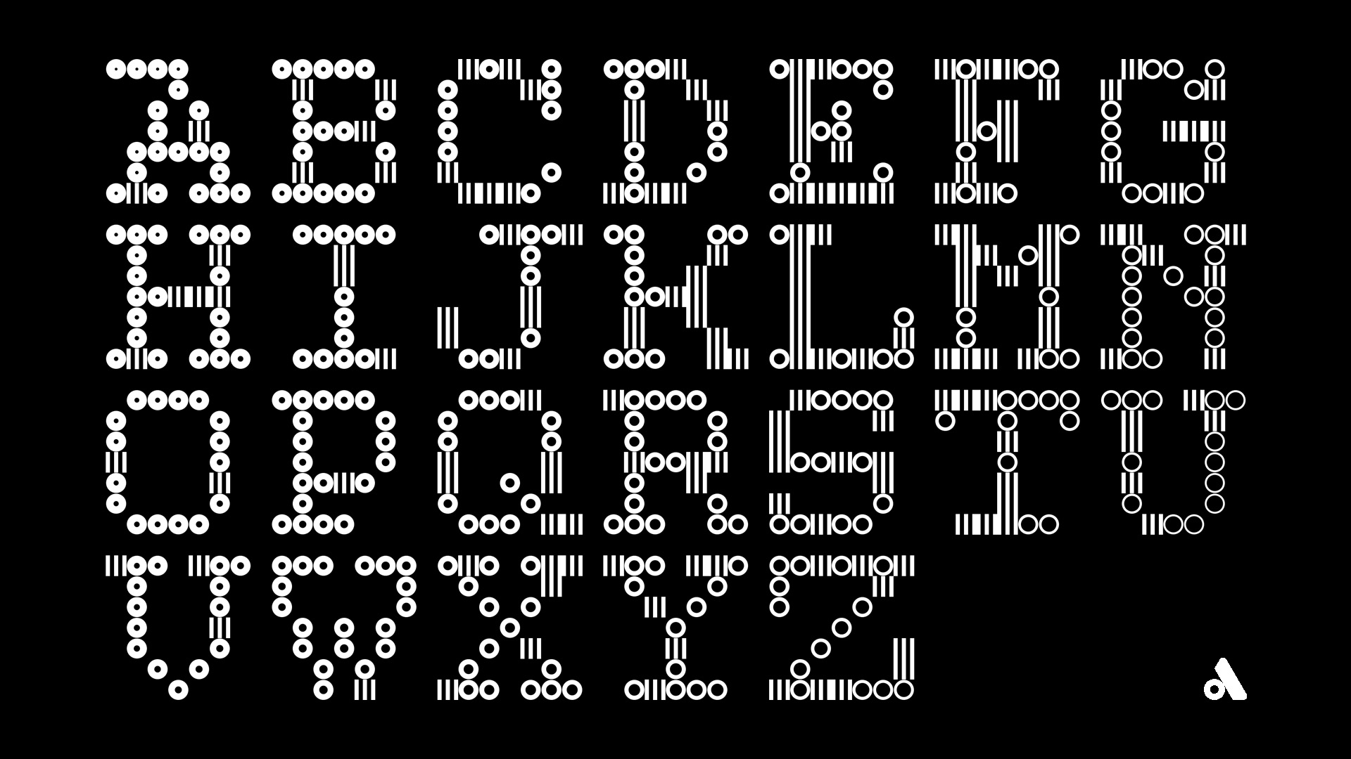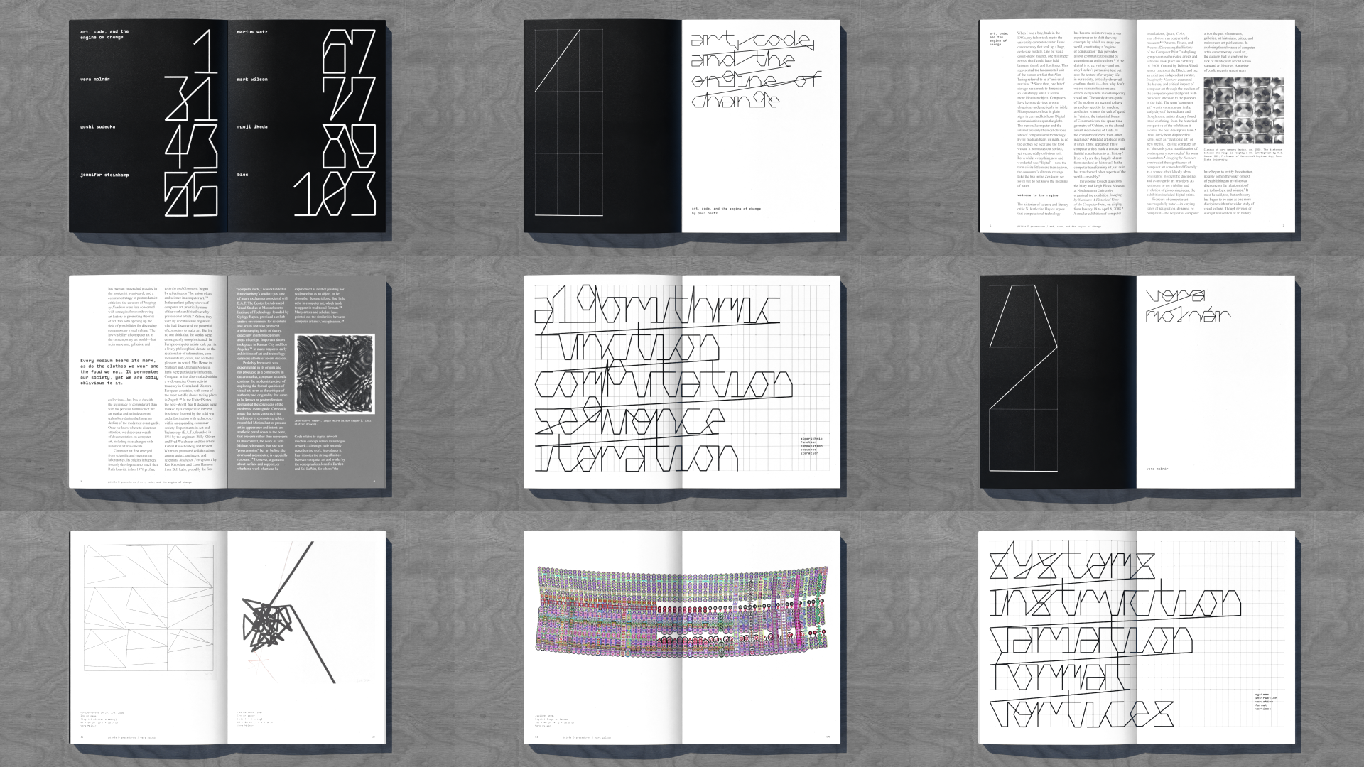 The visual system revolves around a set of letters, built using the JavaScript library p5.js, and evocative of pen plotter drawings.