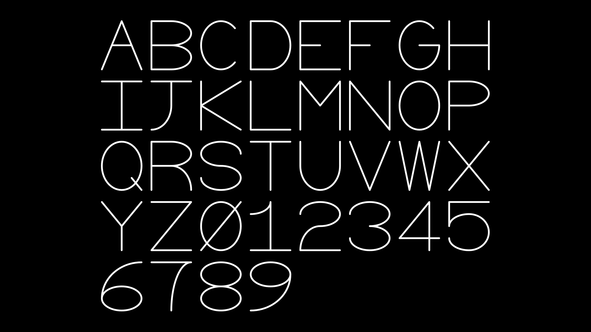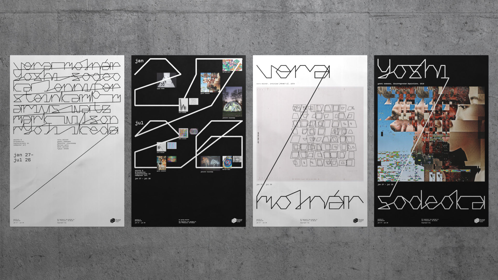 The visual system revolves around a set of letters, built using the JavaScript library p5.js, and evocative of pen plotter drawings.